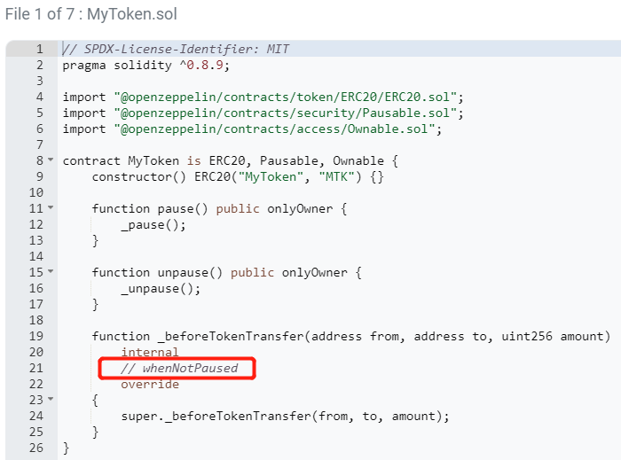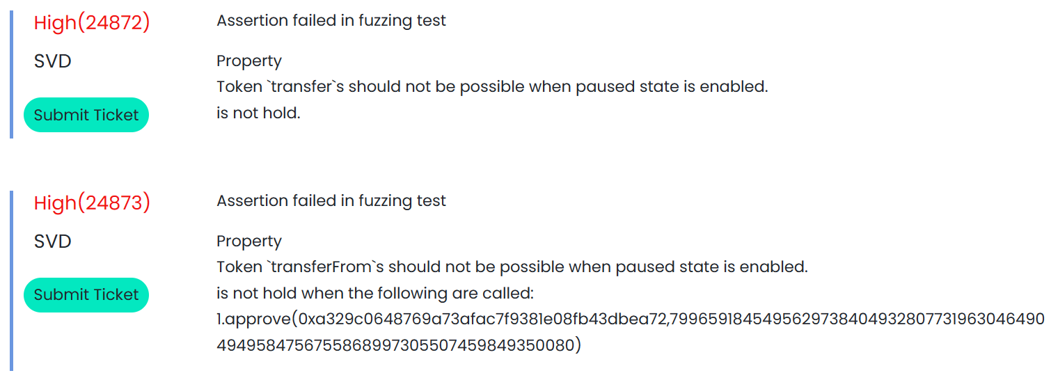 In the contract source code, the whenNotPaused modifier of _beforeTokenTransfer() is commented out, allowing users to transfer funds even when the contract is in a paused state. Our fuzzing test captured this anomaly.